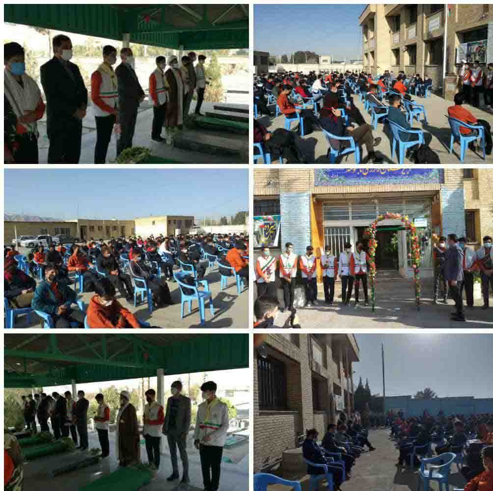 لازم به ذکر است در ادامه این مراسم دانش آموزان ضمن رعایت پروتکل های بهداشتی با حضور در گلزار شهدا با آرمان های شهدا تجدید میثاق نمودند.